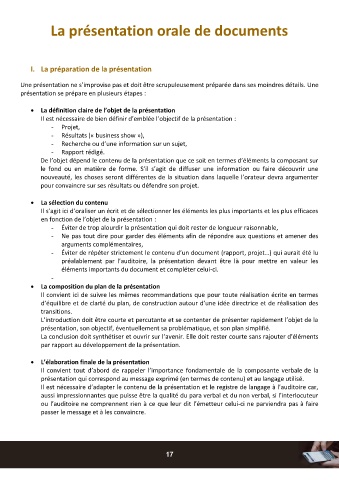 I. La préparation de la présentation