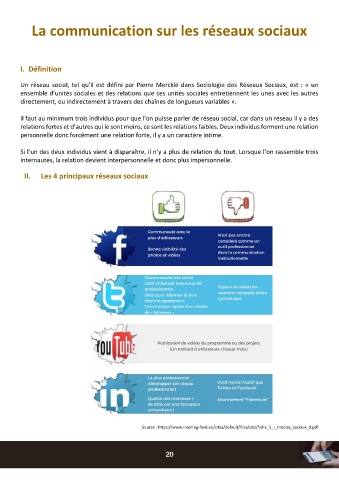 Un réseau social, tel qu’il est défini par Pierre Mercklé dans Sociologie des Réseaux Sociaux, est : « un