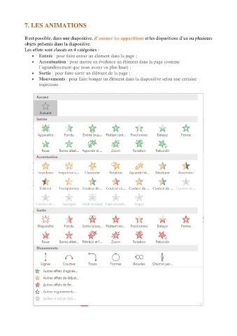 • Mouvements : pour faire bouger un élément dans la diapositive selon une certaine