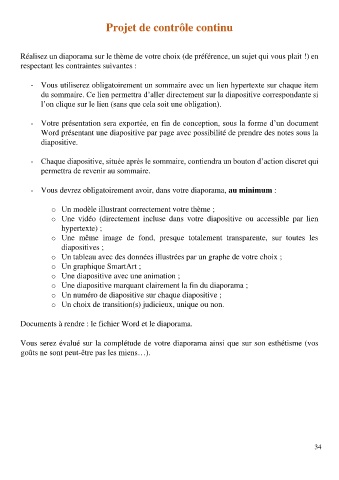 Documents à rendre : le fichier Word et le diaporama.