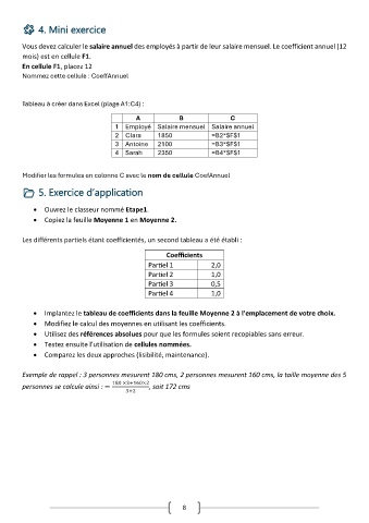 • Modifiez le calcul des moyennes en utilisant les coefficients.