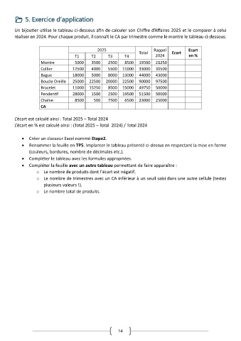 Un bijoutier utilise le tableau ci-dessous afin de calculer son Chiffre d’Affaires 2025 et le comparer à celui