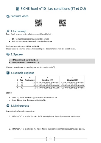 FICHE Excel n°10 : Les conditions (ET et OU)