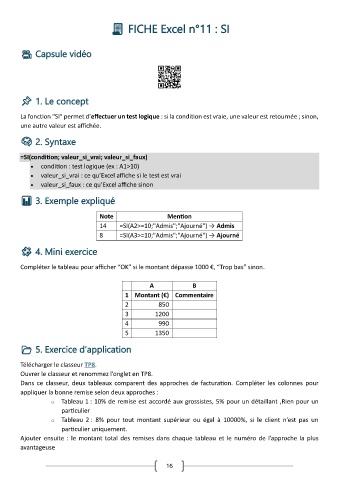 14 =SI(A2>=10;"Admis";"Ajourné") → Admis