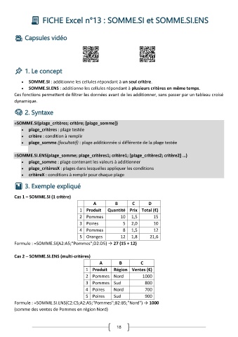 FICHE Excel n°13 : SOMME.SI et SOMME.SI.ENS