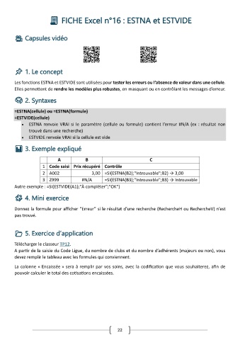 FICHE Excel n°16 : ESTNA et ESTVIDE