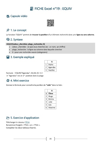 La fonction "EQUIV" permet de trouver la position d’un élément recherché dans une ligne ou une colonne.