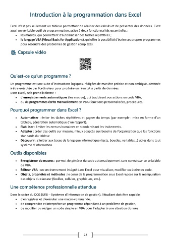 • de modifier ou rédiger un code simple en VBA pour l’adapter à une situation donnée.