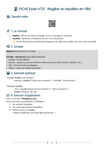 FICHE Excel n°23 : MsgBox et InputBox en VBA