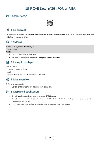 FICHE Excel n°26 : FOR en VBA