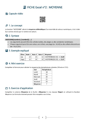 Compléter la colonne Moyenne de la feuille « Moyenne 1 » du classeur Etape1 en utilisant la fonction