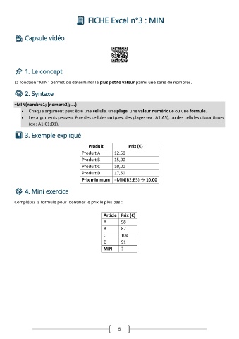 La fonction "MIN" permet de déterminer la plus petite valeur parmi une série de nombres.