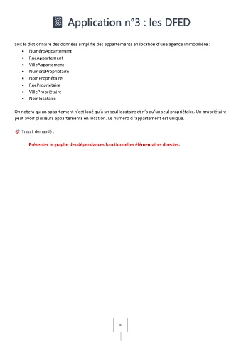 Soit le dictionnaire des données simplifié des appartements en location d’une agence immobilière :