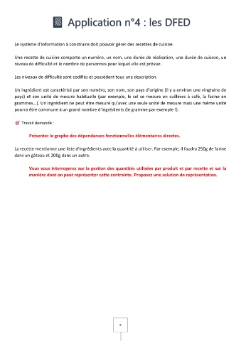 Le système d’information à construire doit pouvoir gérer des recettes de cuisine.