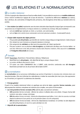 • 1FN (première forme normale) : élimine les valeurs multiples dans une cellule. Chaque champ doit