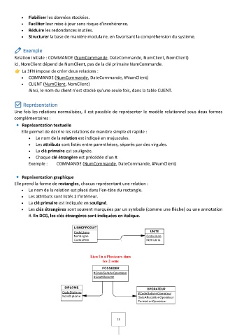 Exemple : COMMANDE (NumCommande, DateCommande, #NumClient)