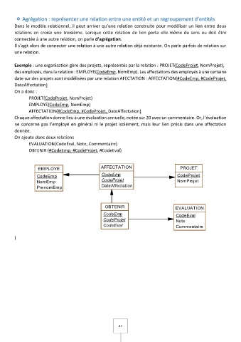date sur des projets sont modélisées par une relation AFECTATION : AFFECTATION(#CodeEmp, #CodeProjet,