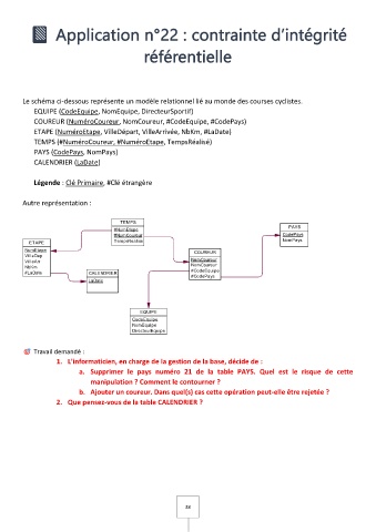 Le schéma ci-dessous représente un modèle relationnel lié au monde des courses cyclistes.