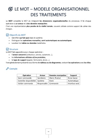 Le MOT complète le MCT en intégrant les dimensions organisationnelles du processus. Il lie chaque