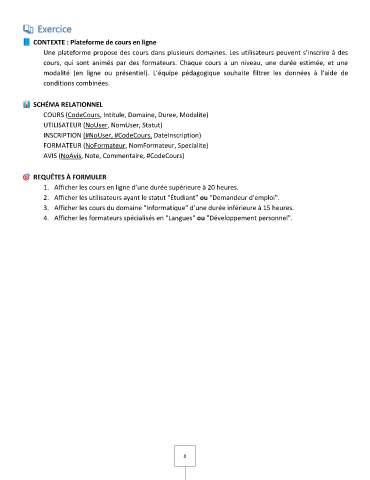 Une plateforme propose des cours dans plusieurs domaines. Les utilisateurs peuvent s’inscrire à des