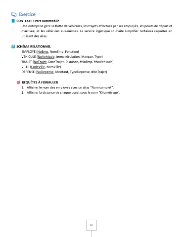 d’arrivée, et les véhicules eux-mêmes. Le service logistique souhaite simplifier certaines requêtes en