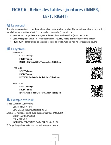 • LEFT JOIN : garde toutes les lignes de la table de gauche, même si rien ne correspond à droite.