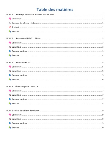 FICHE 5 – Alias de table et de colonne ................................................................................................................... 9