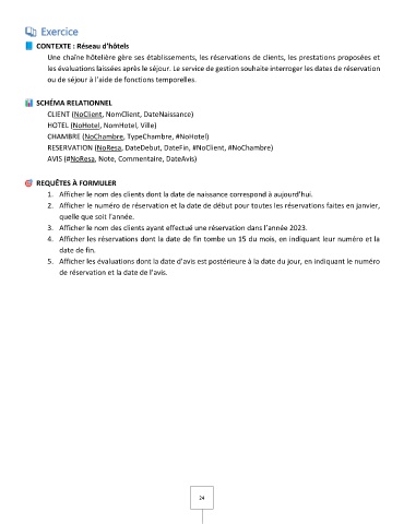 Une chaîne hôtelière gère ses établissements, les réservations de clients, les prestations proposées et
