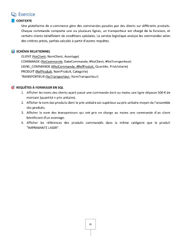 Une plateforme de e-commerce gère des commandes passées par des clients sur différents produits.
