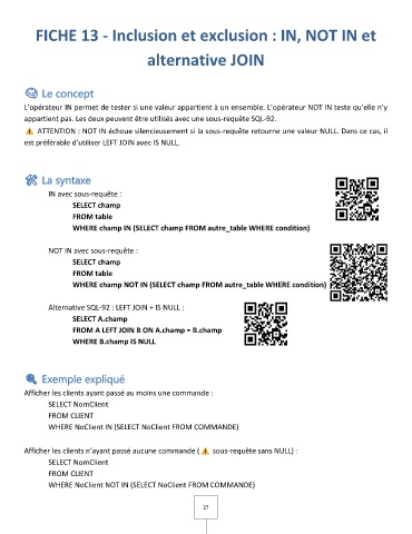 FICHE 13 - Inclusion et exclusion : IN, NOT IN et