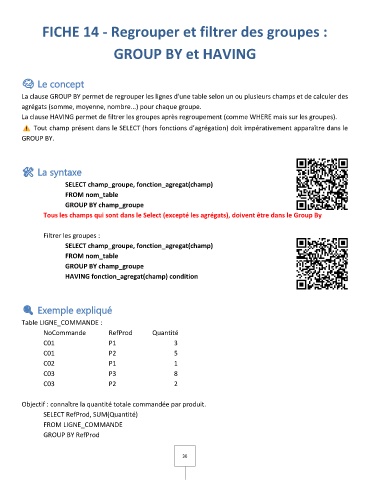 Tout champ présent dans le SELECT (hors fonctions d’agrégation) doit impérativement apparaître dans le
