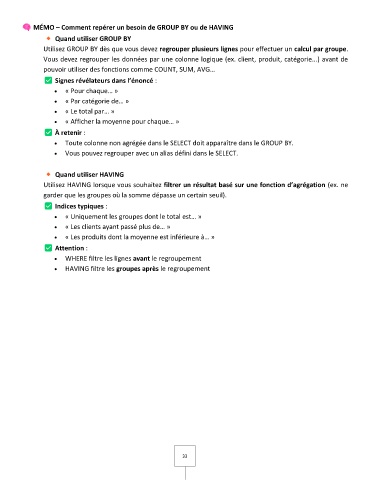 MÉMO – Comment repérer un besoin de GROUP BY ou de HAVING