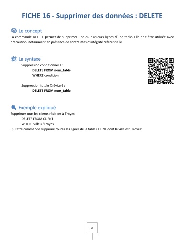 → Cette commande supprime toutes les lignes de la table CLIENT dont la ville est 'Troyes'.
