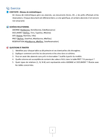 5. Quels types de relations (1, N, N-N) sont représentés entre ABONNE et DOCUMENT ? Illustre avec