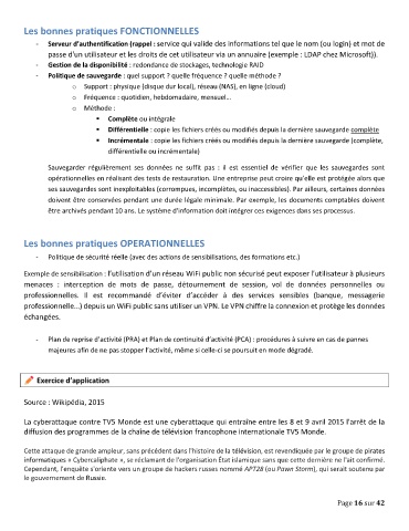 - Plan de reprise d’activité (PRA) et Plan de continuité d’activité (PCA) : procédures à suivre en cas de pannes