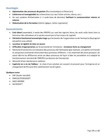 • Coût élevé (cependant, il existe des ERP/PGI qui sont des logiciels libres, les seuls coûts étant alors la