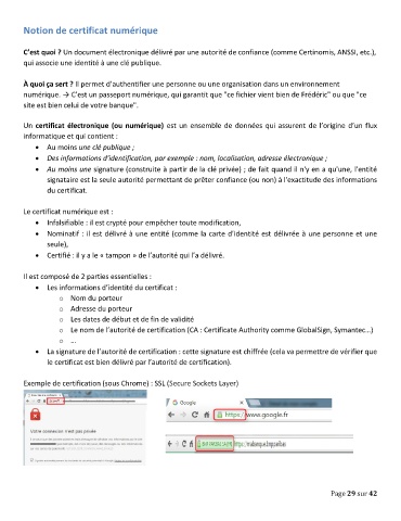 Exemple de certification (sous Chrome) : SSL (Secure Sockets Layer)
